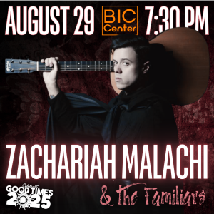 The last full week of August is here, as hard as it is to believe. Your Community Center is wrapping up the summer with a Nashville bang, courtesy of Beaver Island favorite Zachariah Malachi, returning to our stage this time with his new line-up The Familiars. The house-rocking group pays homage to the golden era of country music while fearlessly exploring new territory, making each performance a journey through genres and eras. A dynamic and unpredictable performer, Malachi has built a strong following thanks to his electrifying live shows, which are equal parts heartfelt storytelling and rollicking good time. Whether he’s crooning a tearjerker or tearing through a barn-burner, his stage presence is magnetic, and his passion unmistakable. He’ll be bringing the full band he regularly plays with in Downtown Nashville – seasoned players who bring a tight, high-energy sound honed from countless nights on the city’s most iconic stages. Together, they create a musical experience that’s as authentic as it is unforgettable. This show is sold out as of Monday morning, but please call the BIC Center at 231-448-2020 to be placed on a wait list if you wish.